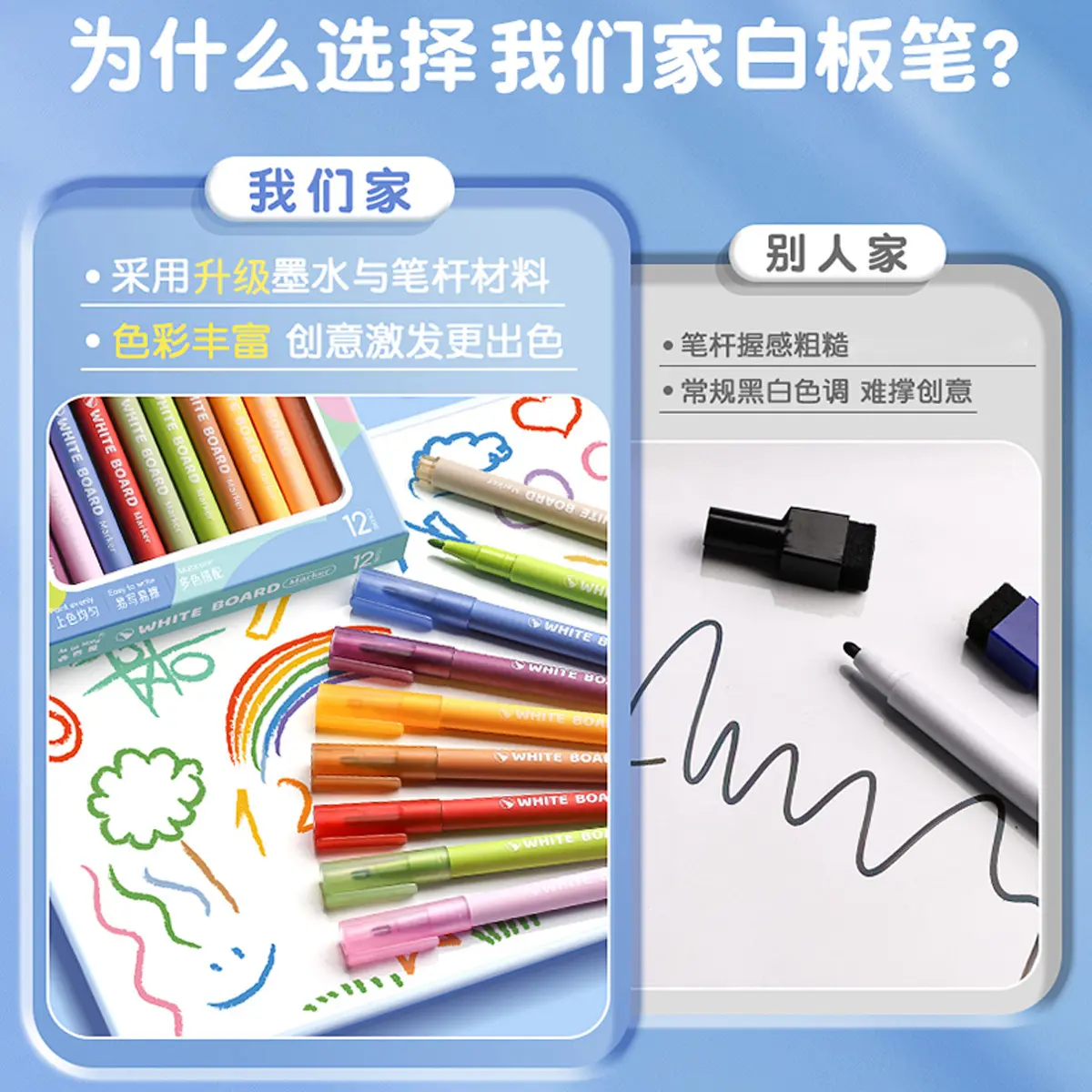 彩色白板笔可擦少儿水性黑板笔易擦写记号笔教师教学家用画板办公