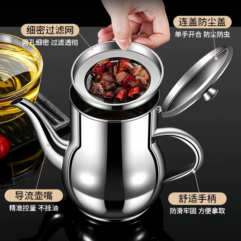 特厚不锈钢食品级油壶家用厨房过滤油渣大容量加厚储油罐油瓶防漏