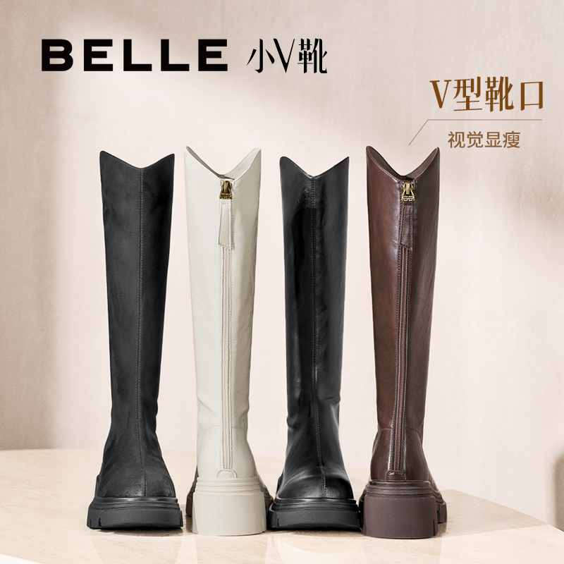 百丽小V高长弹力靴25冬季新款厚底加绒显瘦瘦骑士长筒靴子E5F2D