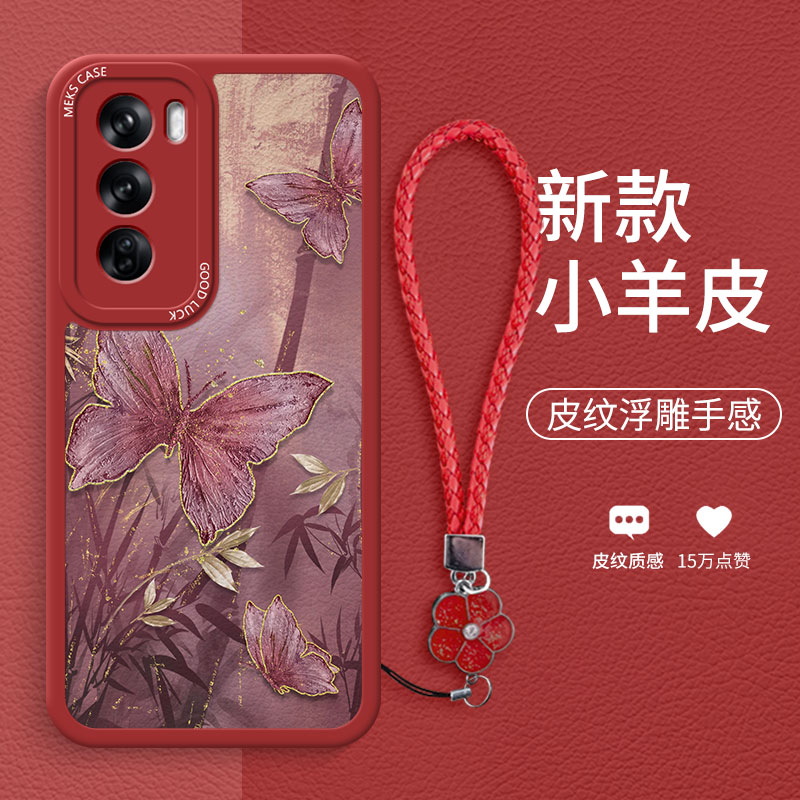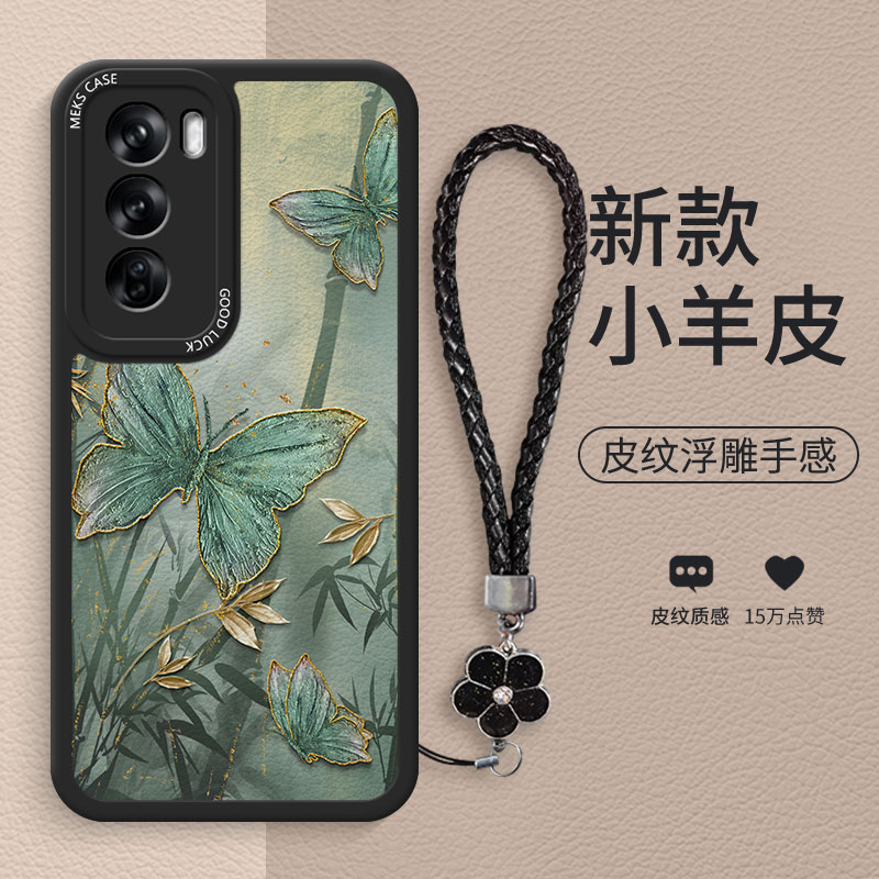 墨竹蝴蝶适用于opporeno12手机壳Reno14Pro新款reno13新中式11pro女款Reno10小羊皮reno9硅胶reno8全包防摔