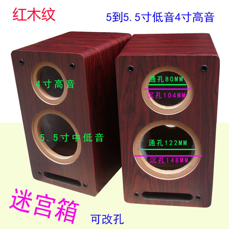 5.5寸低音4寸高音空箱体木质音箱壳二分频喇叭无源箱书架可改孔