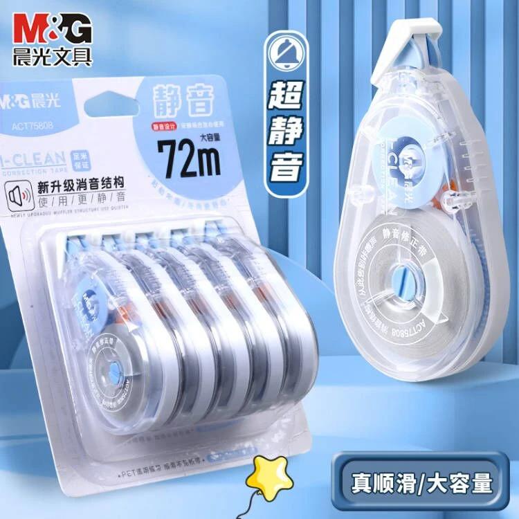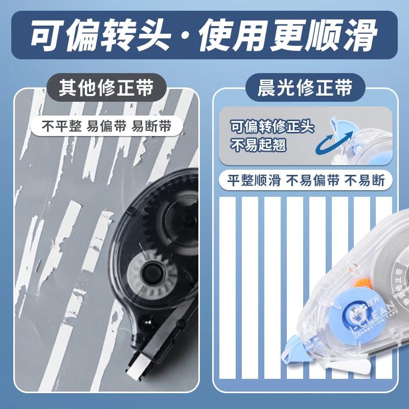 晨光蓝白修正带静音大容量可偏转头改正带涂改带不易断带覆盖力强