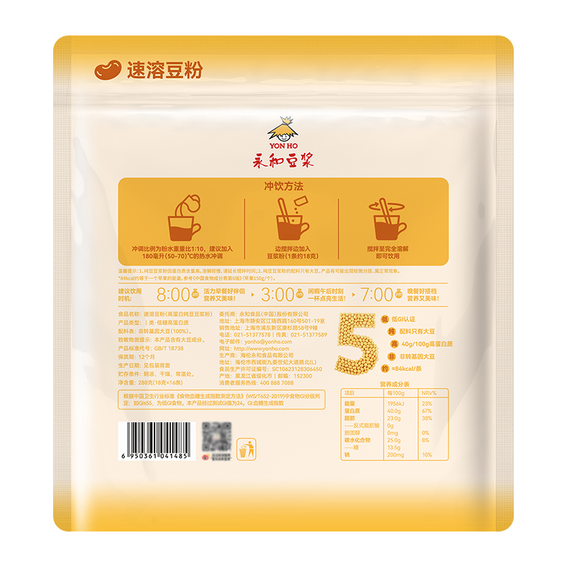 纯豆浆粉288g袋装无添加非转基因大豆黄豆粉内含16包原味冲饮冲泡
