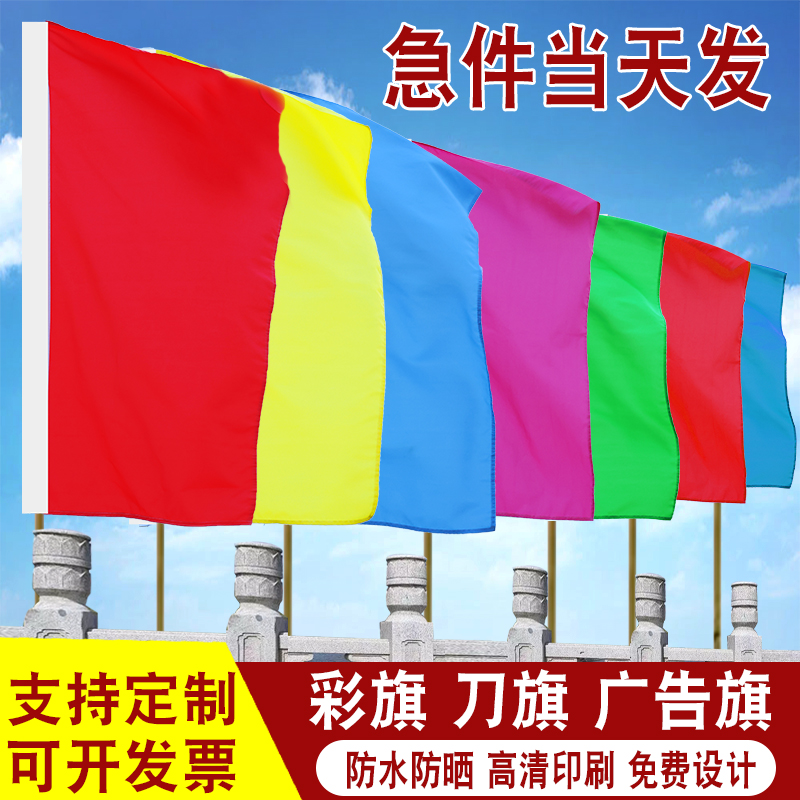 彩旗长方形户外五彩旗帜运动会定做防火工地开业庆典插地道旗广告旗子批发结婚刀旗红旗飘旗带杆定制导游队旗