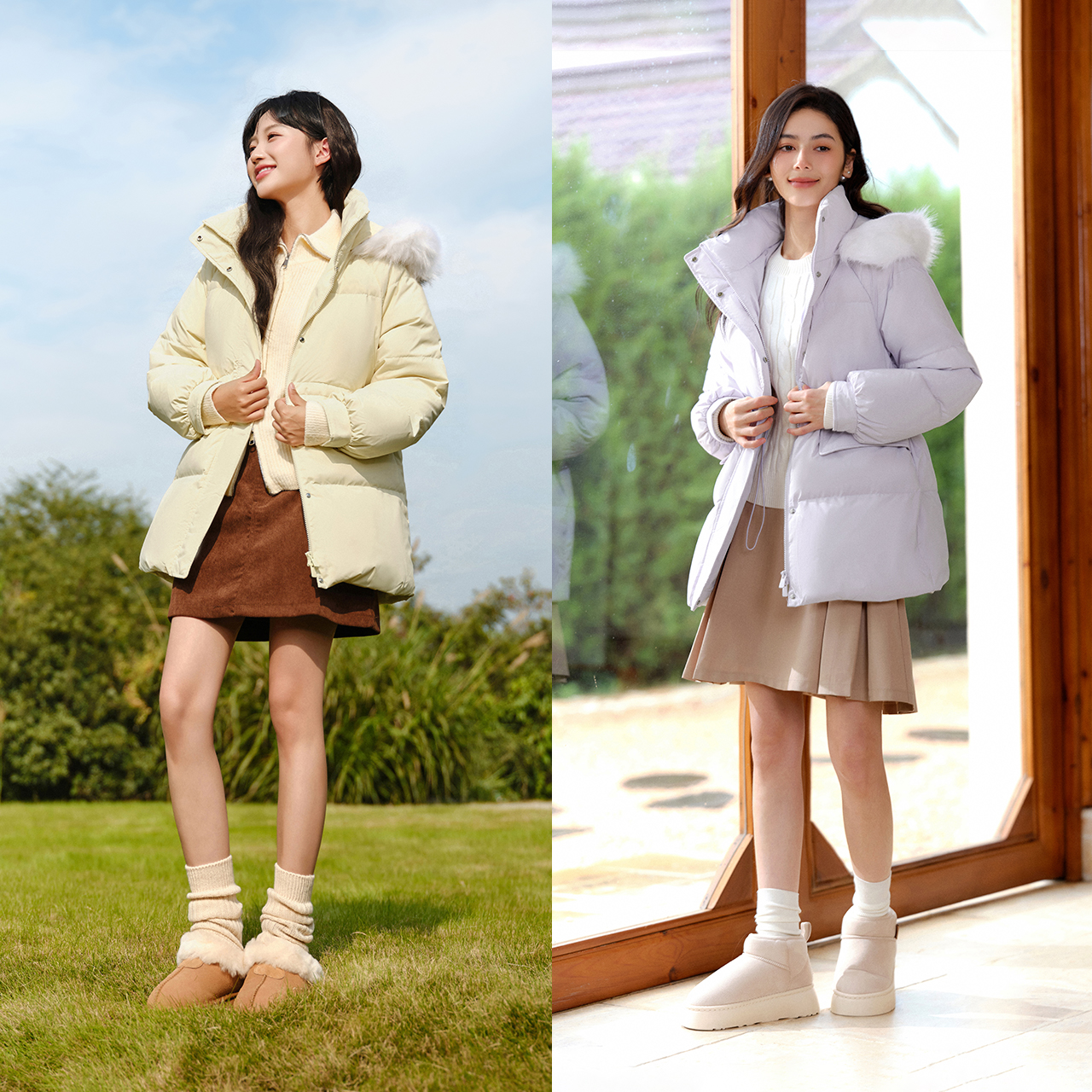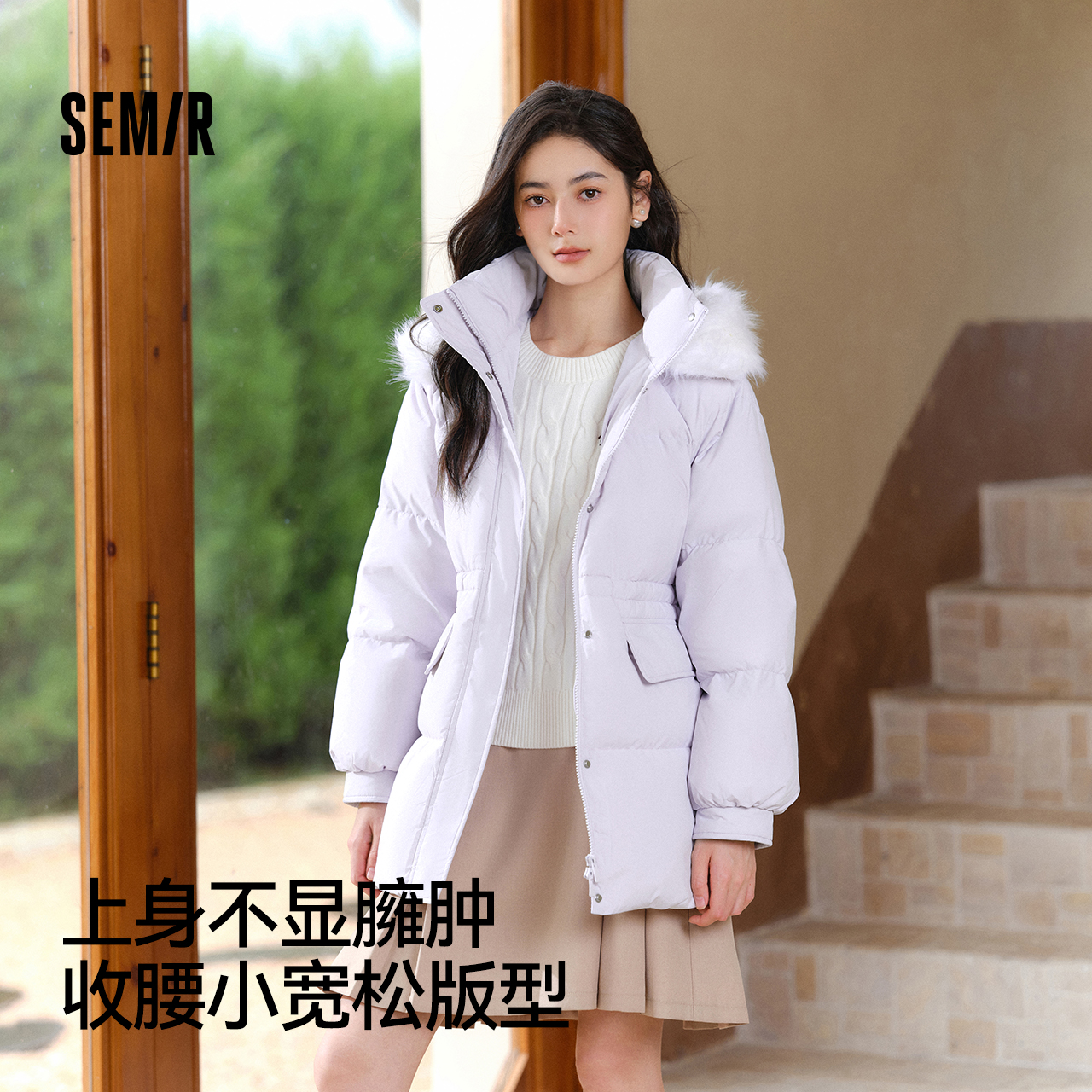 森马毛领羽绒服女2024冬新款毛领中长款外套防水防风上衣一手长