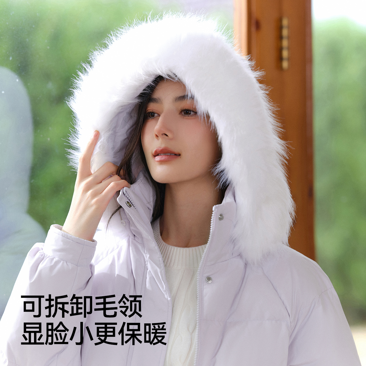 鸭鸭羽绒服女士2024冬季反季短款加厚可拆帽百搭宽松保暖鸭绒外套