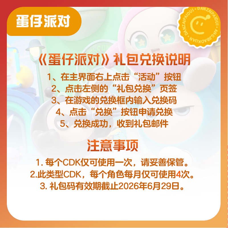 60蛋币【蛋仔派对】CDK礼包码 全渠道通用 不可退款 tb2