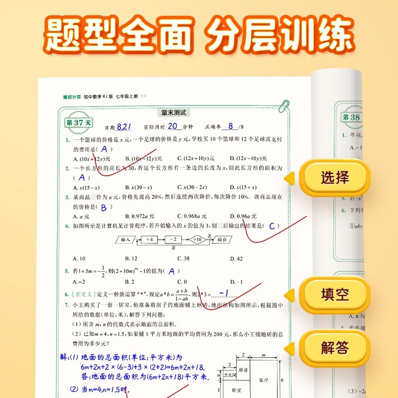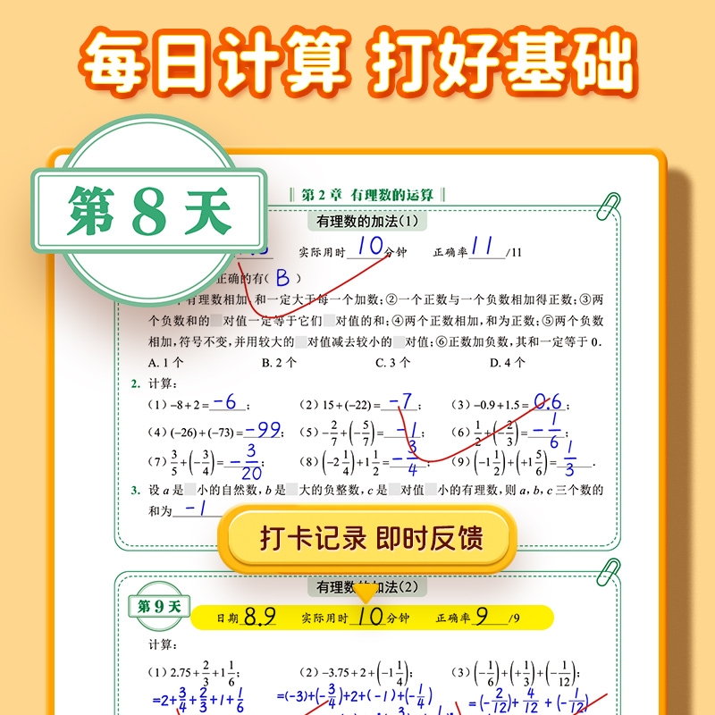 易蓓初中数学睡前计算人教版口算运算解答题七八九年级上下册同步课本每日一练计算100基础题强化满分训练习题册练习本1