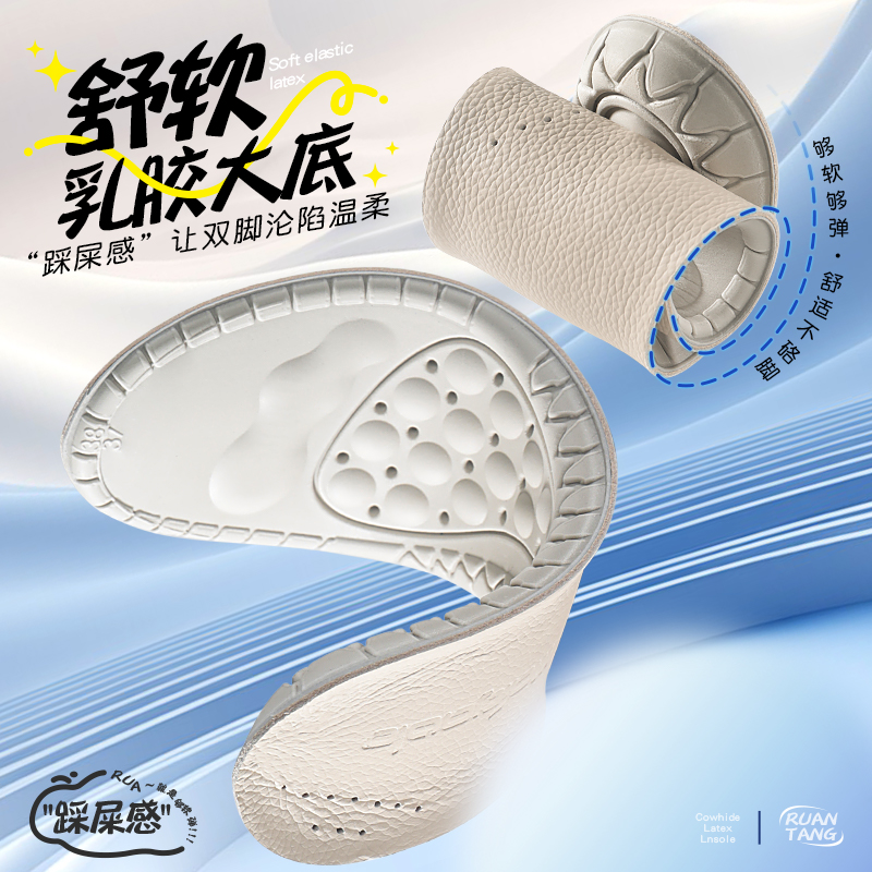 真牛皮乳胶鞋垫男女款超软底加厚踩屎感久站不累吸汗防臭防痛运动