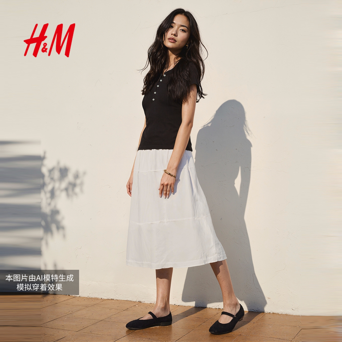 HM女装T恤2025秋季新款基础圆领修身亨利衫领针织短袖上衣1000009