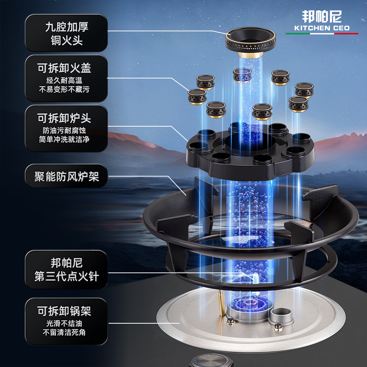 意大利邦帕尼燃气灶家用双灶天然气灶煤气灶台嵌入式炉具猛火定时