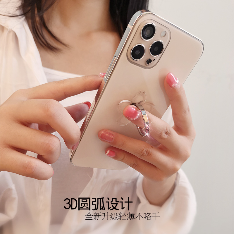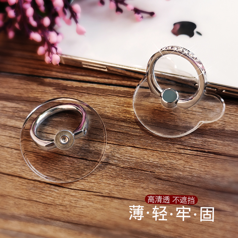 手机指环扣手机壳支架镶钻透明戒指女合金手指扣粘贴式多功能旋转懒人环指扣桌面看直播刷剧上网课支撑架子