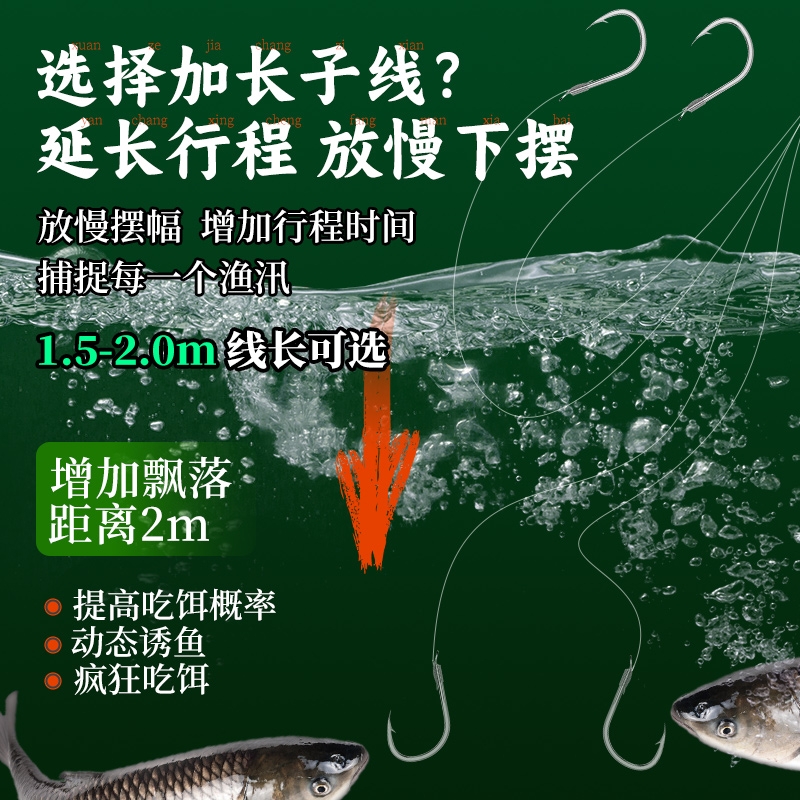 加长草鱼子线双钩成品专用翘嘴鲢鳙伊势尼大物鱼钩无结长子线青鱼