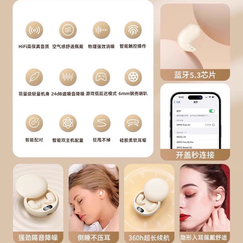 高音质无线蓝牙耳机 2025新款入耳式降噪睡眠侧睡久戴不痛男女生