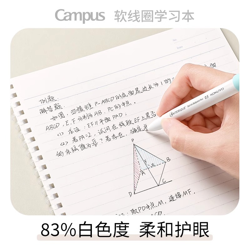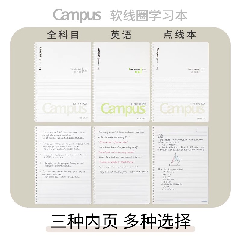 日本kokuyo国誉软线圈本Campus全科目笔记本本子B5空白英语方格错题本简约初中生横线作业本A5高中学生练习本