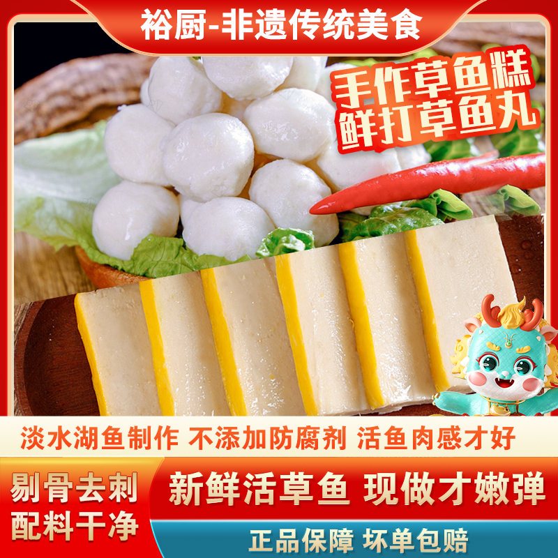 草鱼糕湖北荆州鱼糕鱼丸手工鱼丸火锅食材丸子湖北特产鱼糕麻辣烫