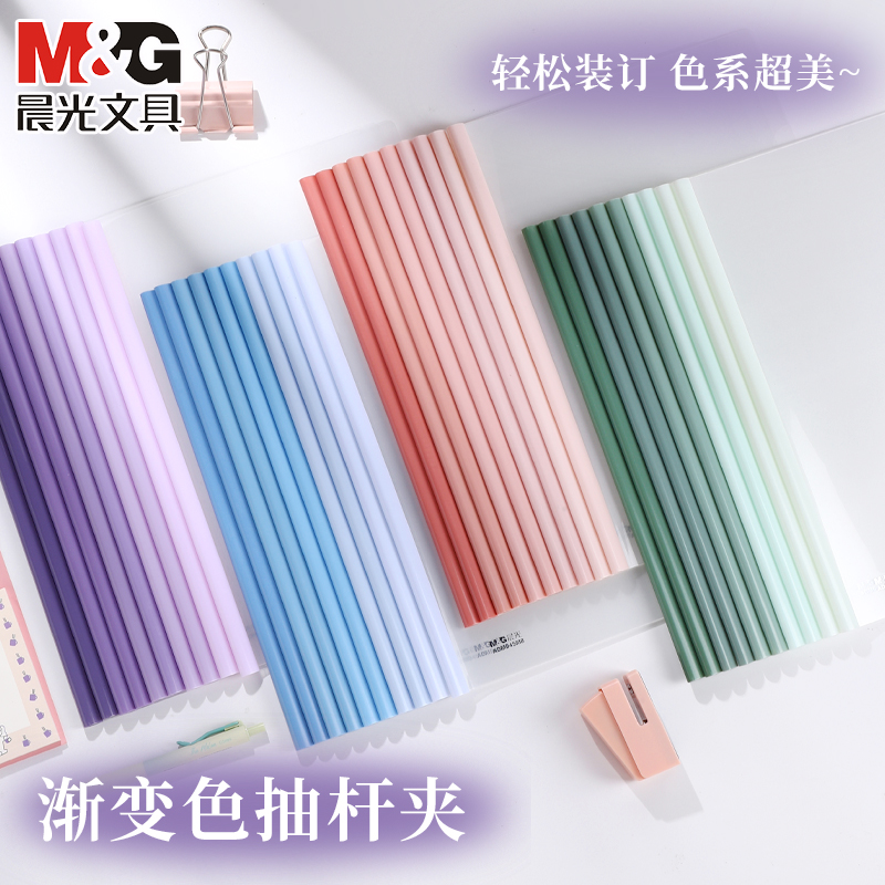 晨光抽杆夹A4文件夹加厚拉杆夹渐变色马卡龙插页书套夹子试卷书皮资料夹学生水滴杆收纳册办公档案报告彩色夹
