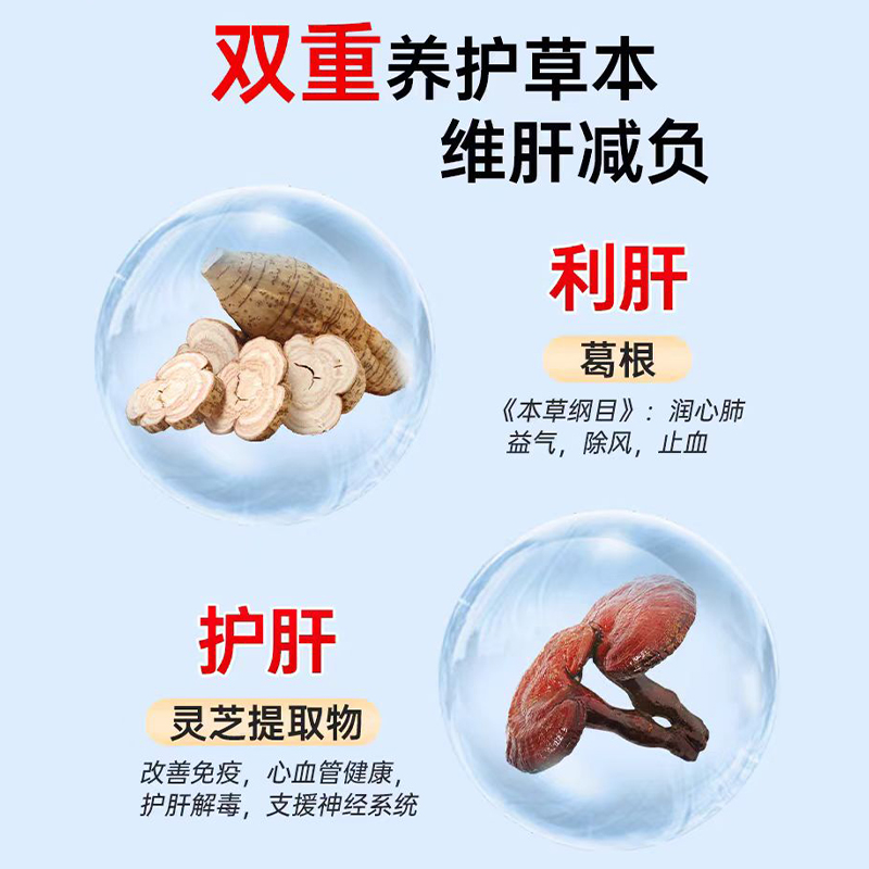 李时珍葛根灵芝片养肝健康养生喝酒熬夜护肝防止口苦口臭尿黄屁多