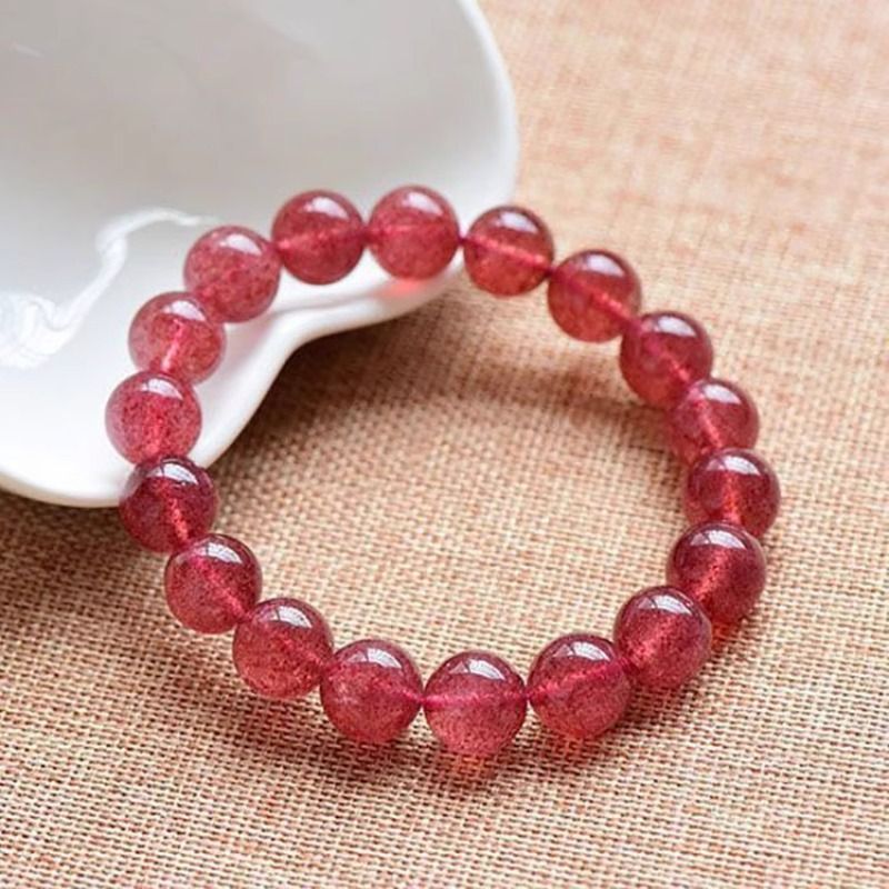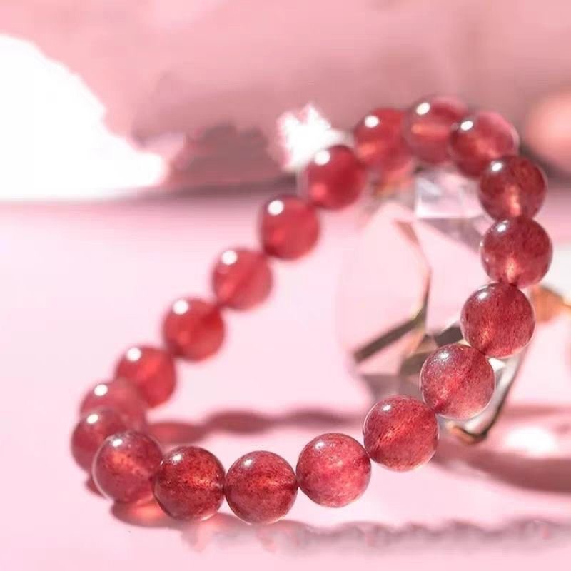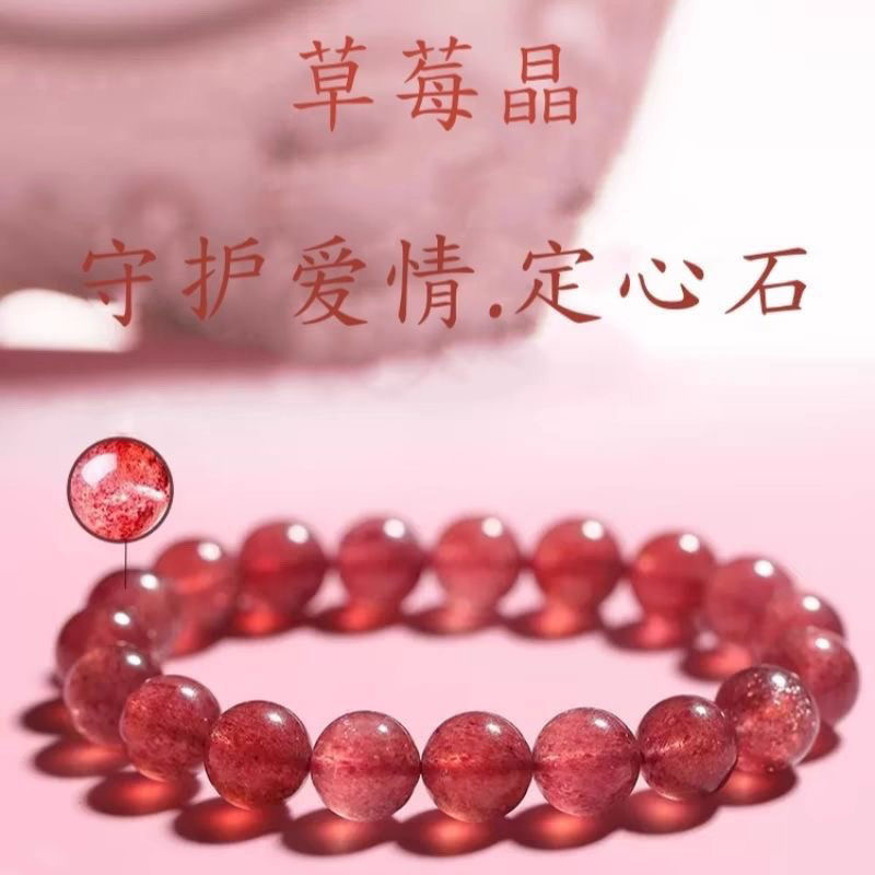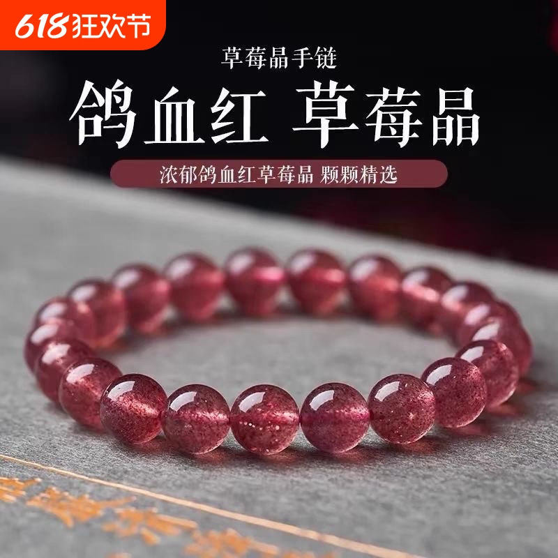 正品鸽血红草莓晶手链女红草莓石转运单圈水晶手串手串鸽血红桃花