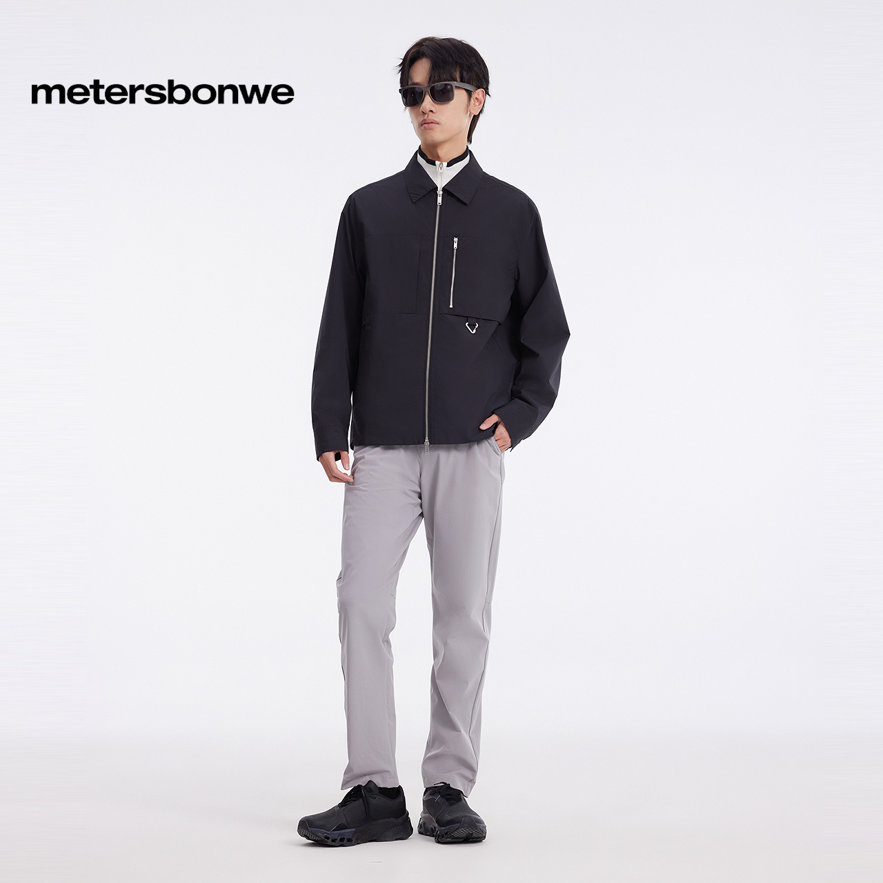 美特斯邦威夹克男士2025春季新款户外翻领机能夹克防水通勤外套男