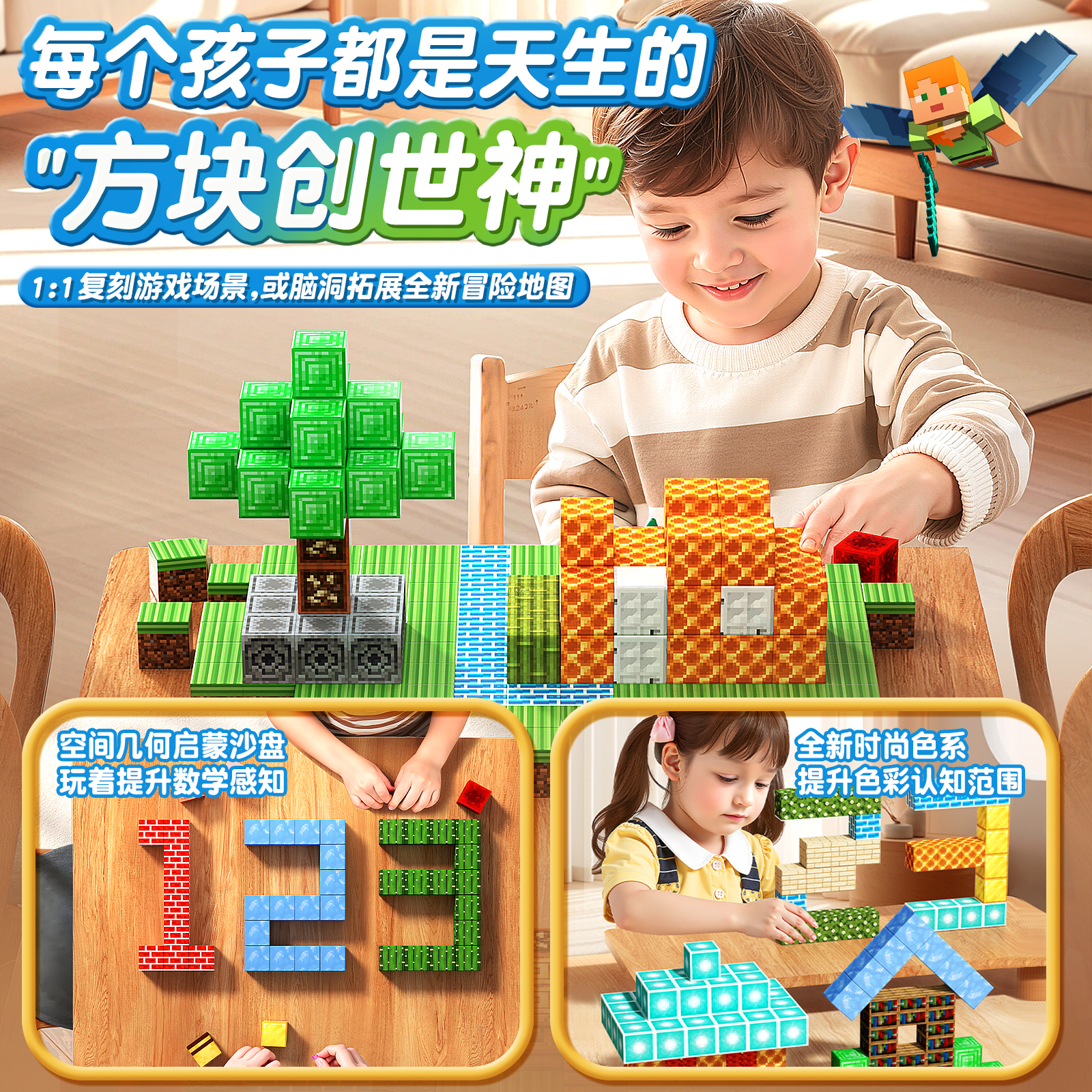 正版磁力方块磁吸磁铁积木全套我的世界6到12岁儿童益智玩具拼装