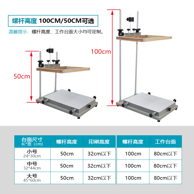 丝网印刷机加长螺杆手动丝印台100cm高杆印花跑台小中小型手印台