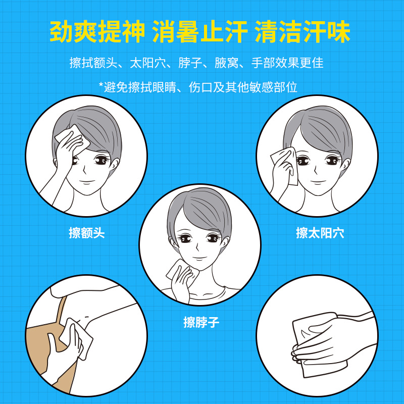 提神湿巾学生消暑止汗清凉爽肤开车醒脑上课防困神器运动冰感降温