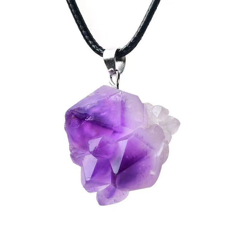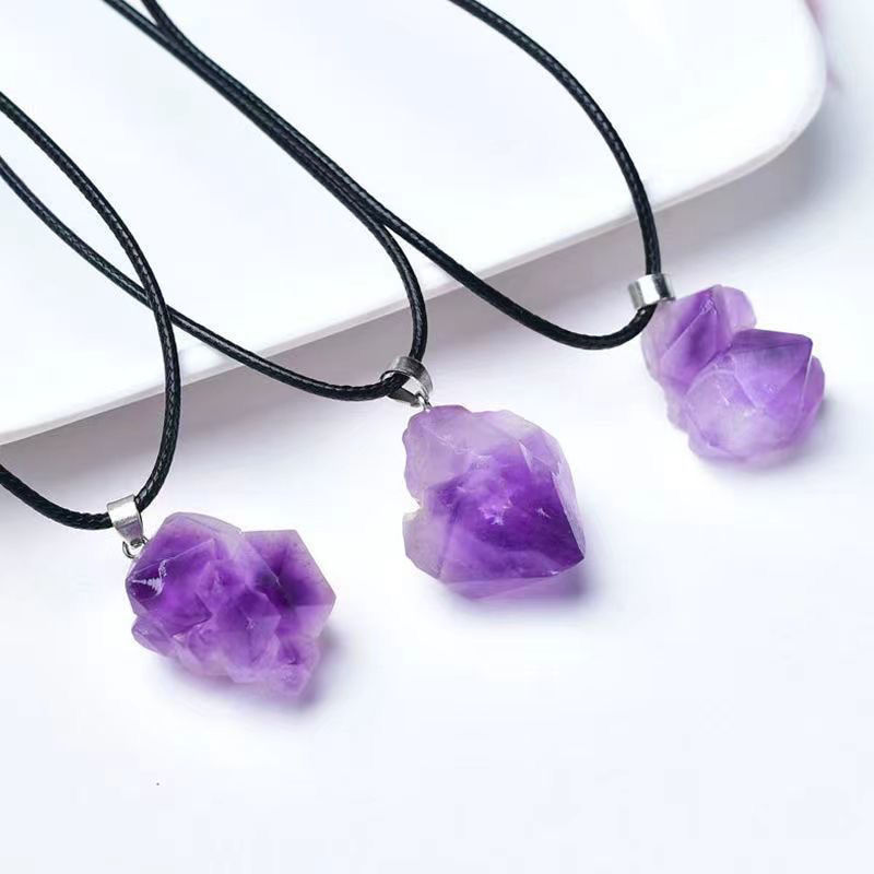 紫水晶簇吊坠天然巴西转运水晶DIY女生吊坠生日礼物紫色项链