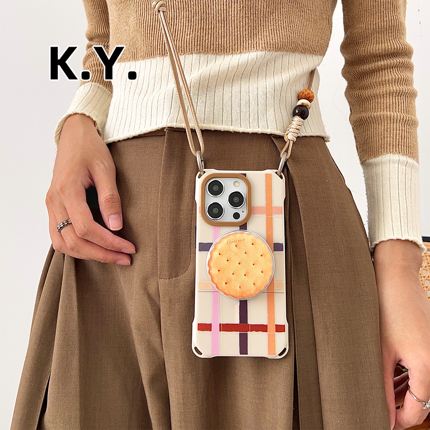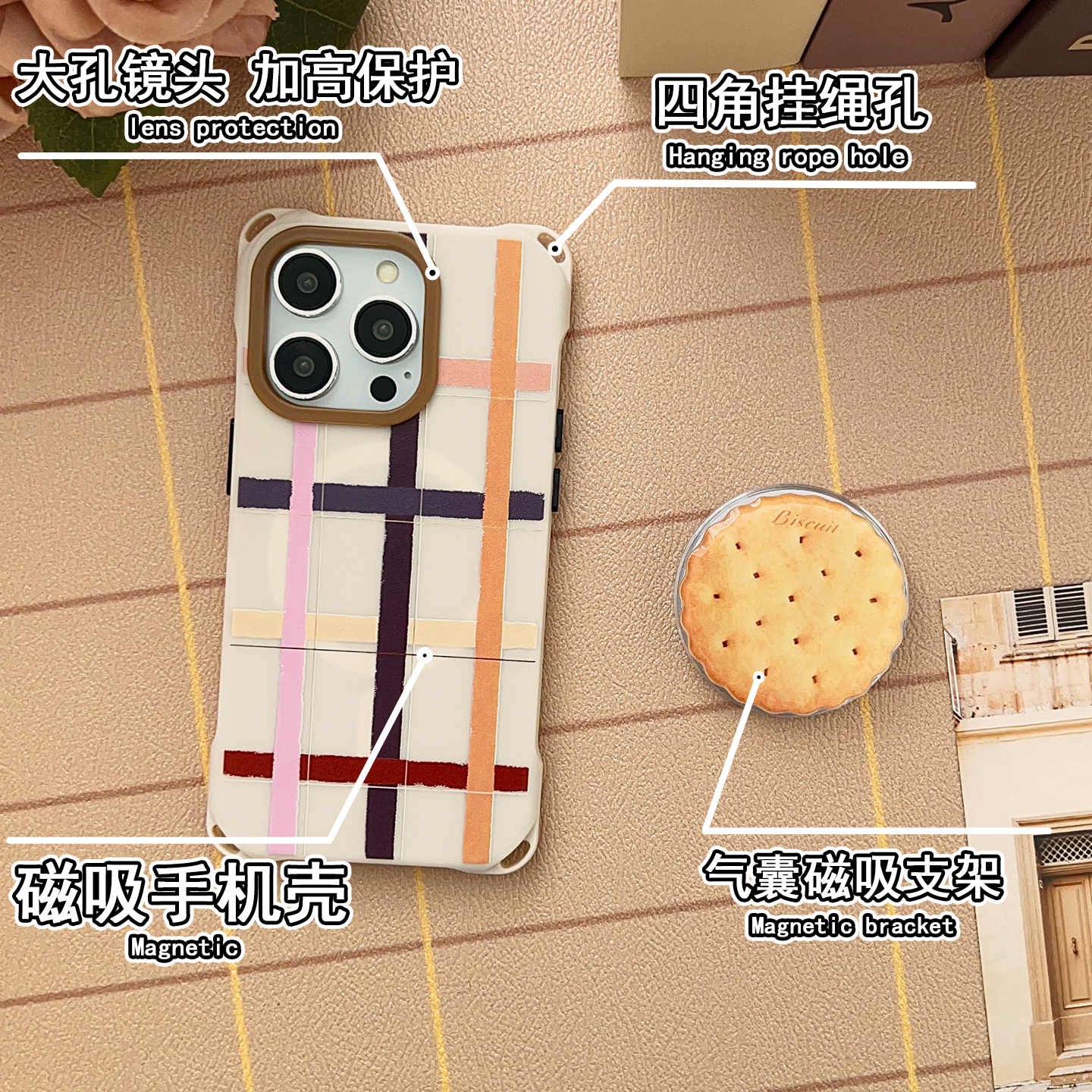 创意饼干磁吸支架手机壳带挂绳适用于苹果17PM华为MATE70Pro背带斜挎苹果16/15pro四角开孔小米15ULTRA保护壳