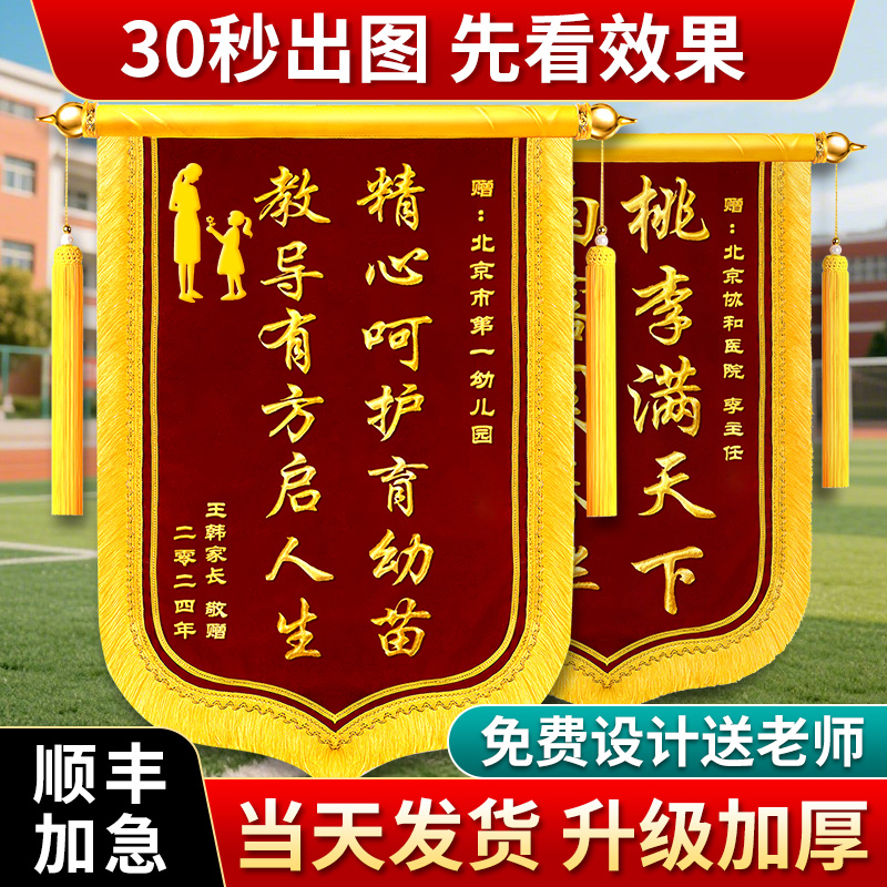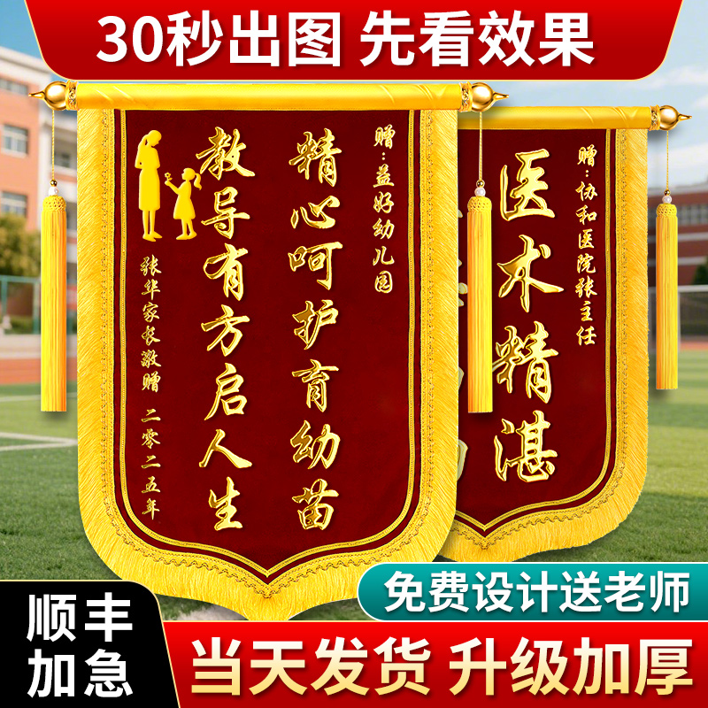 锦旗定制感谢老师医生定做送幼儿园老师学校培训中小学班主任毕业旌旗订做制作赠送服务医护产科医生高档锦旗