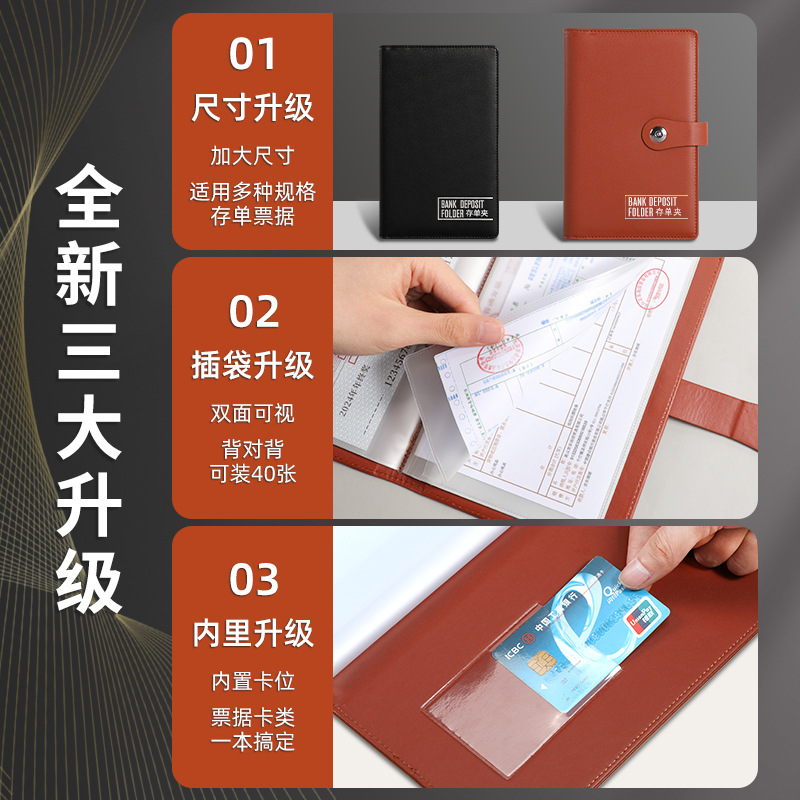 存单收纳本2025新款多功能票据银行定期活期网红存款大额纸质一体化防水收藏夹皮透明大容量装支票汇票收集本