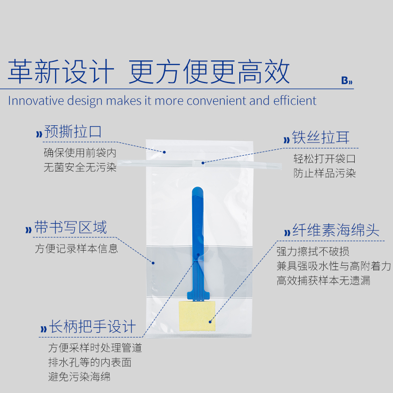 比克曼生物无菌海绵涂抹棒采样袋含D/E中和缓冲液采集袋实验室用