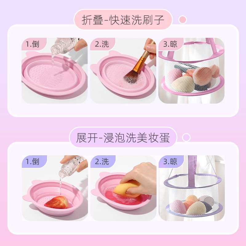 化妆刷清洗工具美妆蛋粉扑硅胶洗刷碗刷子套装清洁液晾晒网兜神器