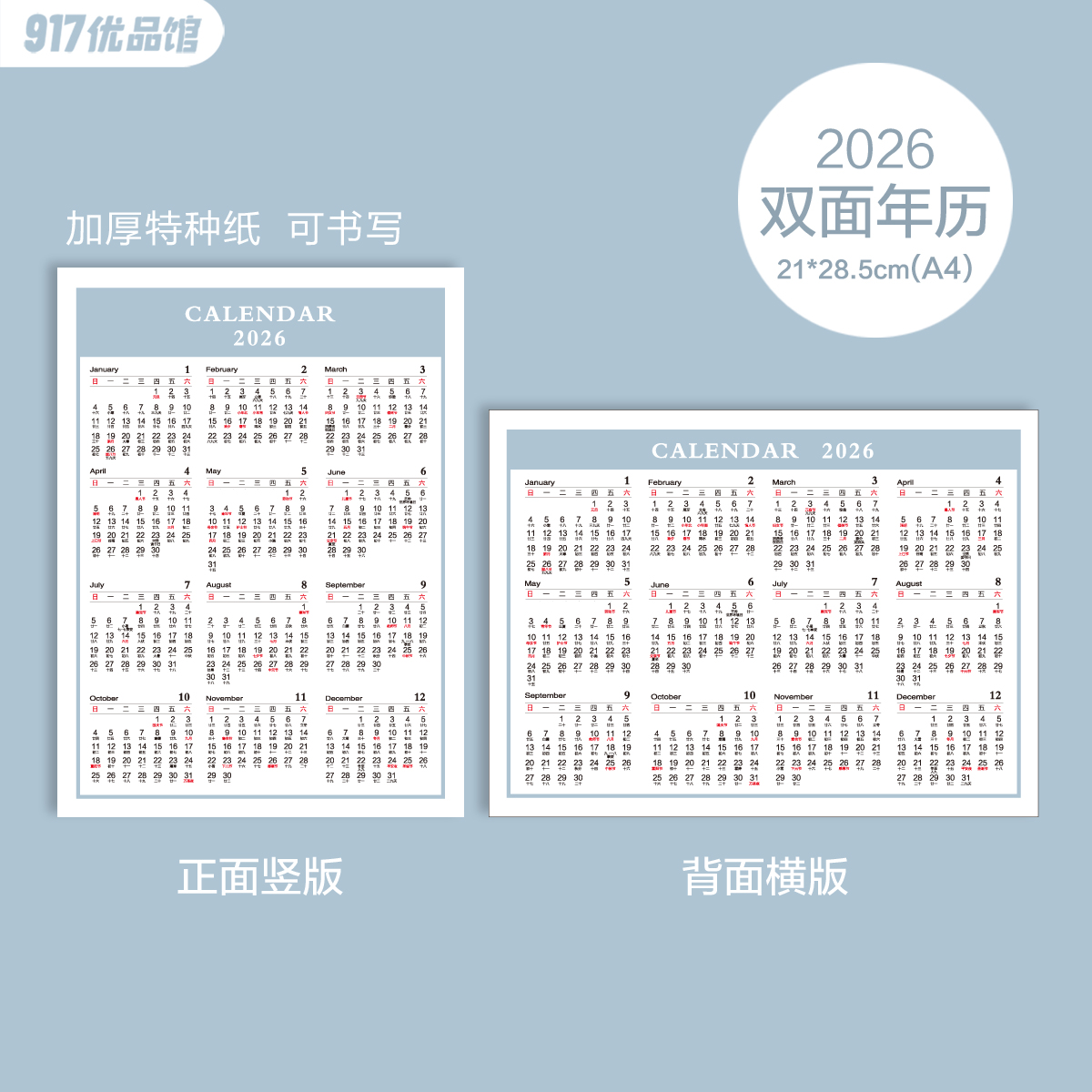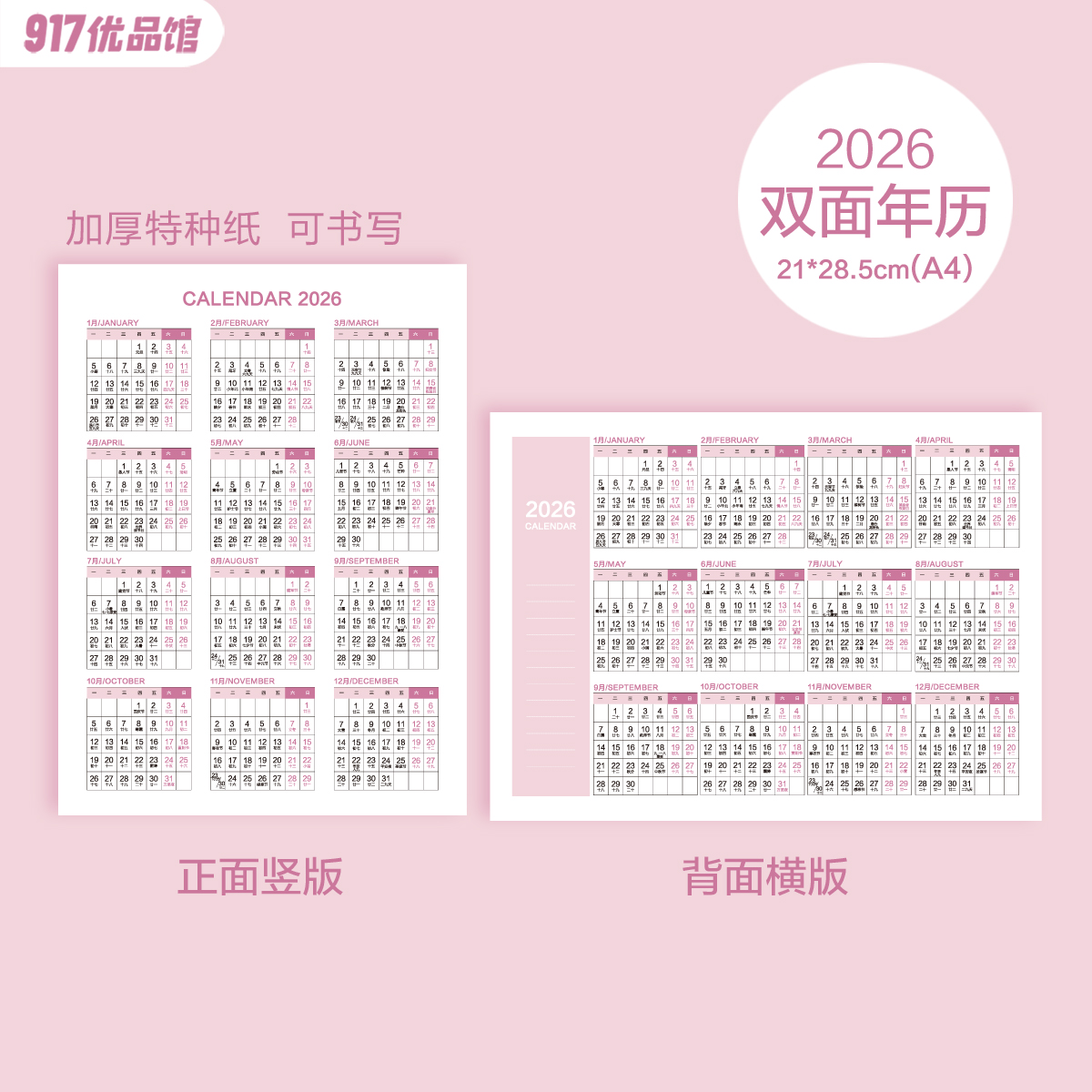 2026年日历计划表A4日历一整张挂历全年一张墙贴单张年历单页2025