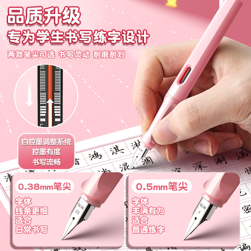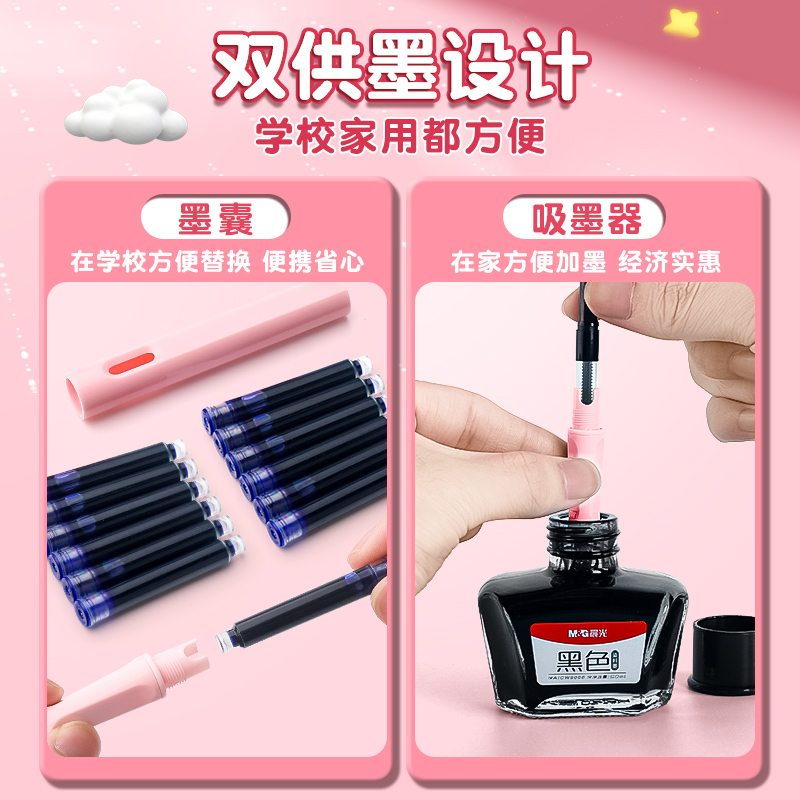 晨光钢笔学生专用小学生三年级儿童练字明尖钢笔初学者可替换墨囊可擦钢笔女孩高颜值黑色纯蓝墨蓝书法不卡墨
