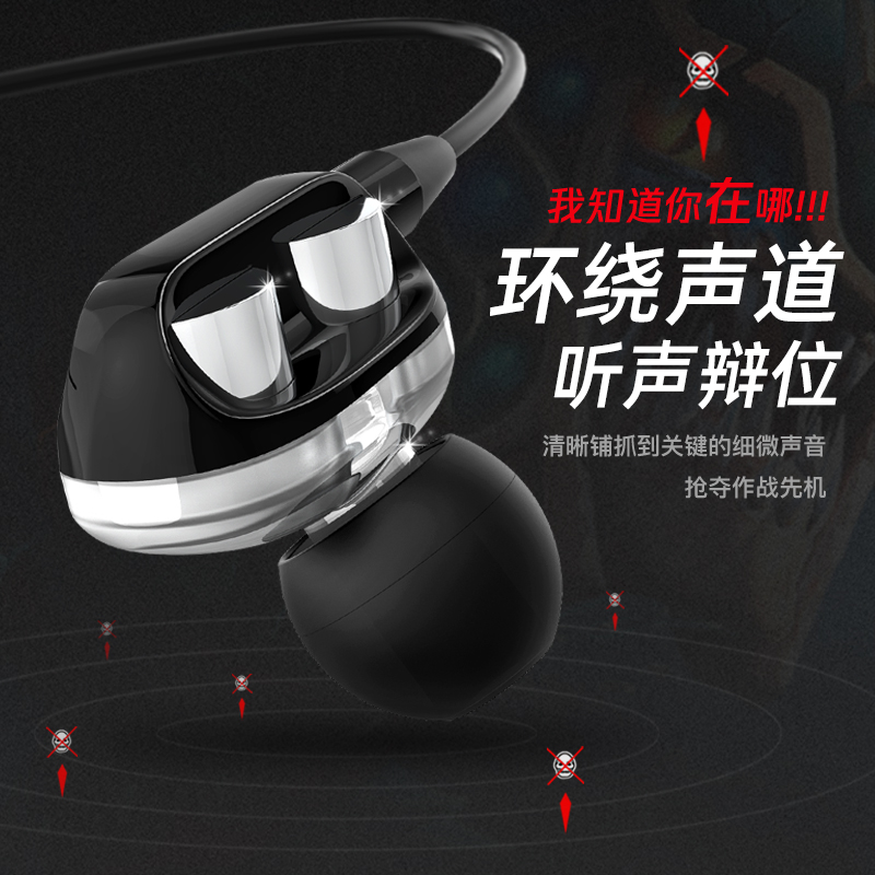 电脑耳机入耳式线控带麦USB有线台式机专用四核双动圈2.5米加长线