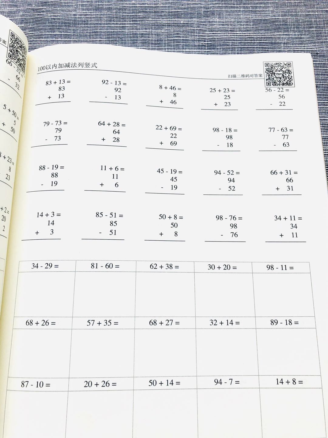 二年级上册100以内加减列竖式 计算题专项训练 小学数学 练习本