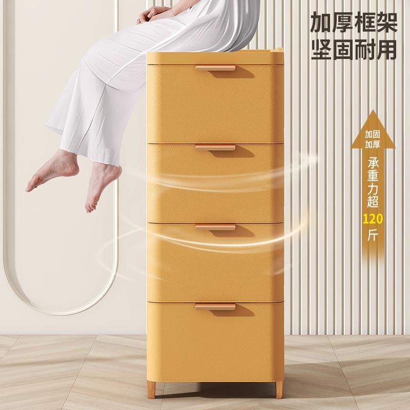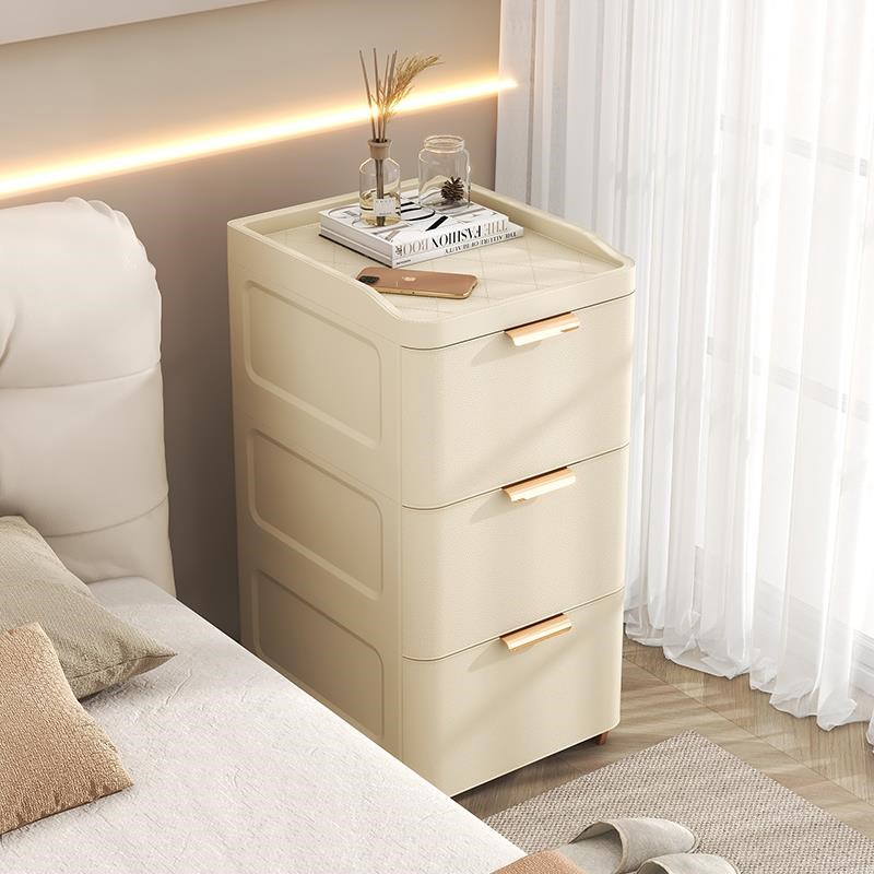 床头收纳柜抽屉式家用卧室床边塑料储物J柜奶油风夹缝加厚置物柜