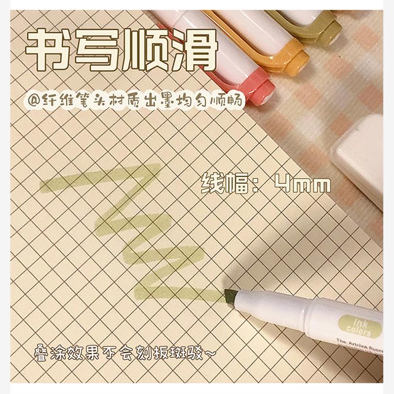 集物社淡色系护眼荧光笔新国风围炉煮茶萤光笔学生用高颜值彩色记号笔大容量划重点标记手账专用银光萤光笔