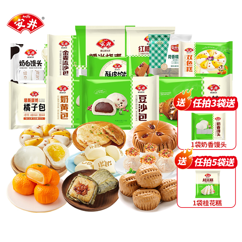 安井早餐包子发糕馒头烧麦流沙包橘子包营养速食面点心糍粑奶香