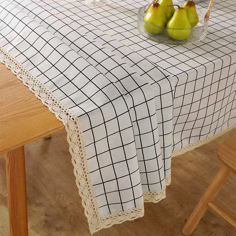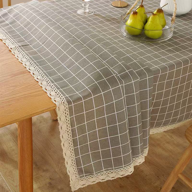 北欧现在简约风格子棉麻桌布长方形桌垫家用防尘盖巾茶几餐桌台布