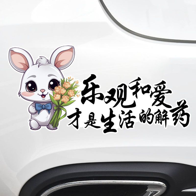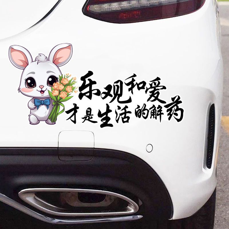 创意趣味文字车贴乐观和爱才是生活得解药车身划痕遮挡不干胶贴纸