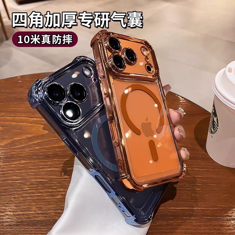 Magsafe磁吸四角气囊适用苹果17手机壳新款iPhone17promax透明电镀16pro带镜头膜15高级感14全包防摔13保护套