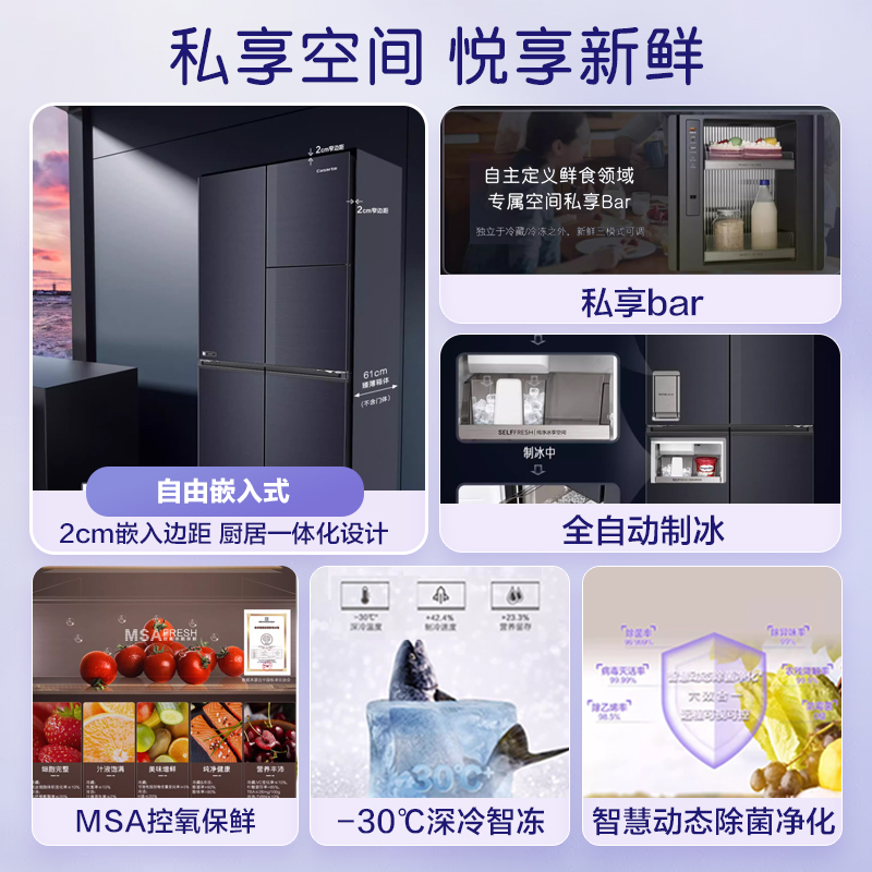 以旧换新补贴卡萨帝506L嵌入式四门制冰风冷无霜一级能效家用冰箱