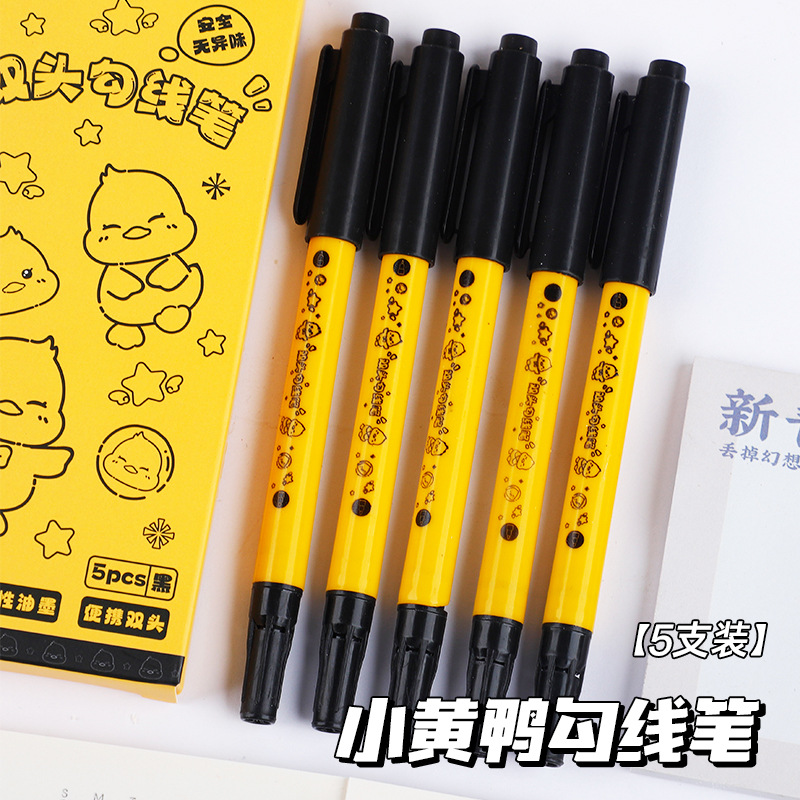 双头小黄鸭美术勾线笔学生绘画描边专用黑色水性速干记号笔