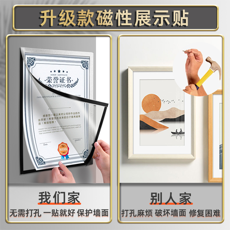 50个a4纸磁性展示贴营业执照保护套磁力贴广告海报照片作品展示框