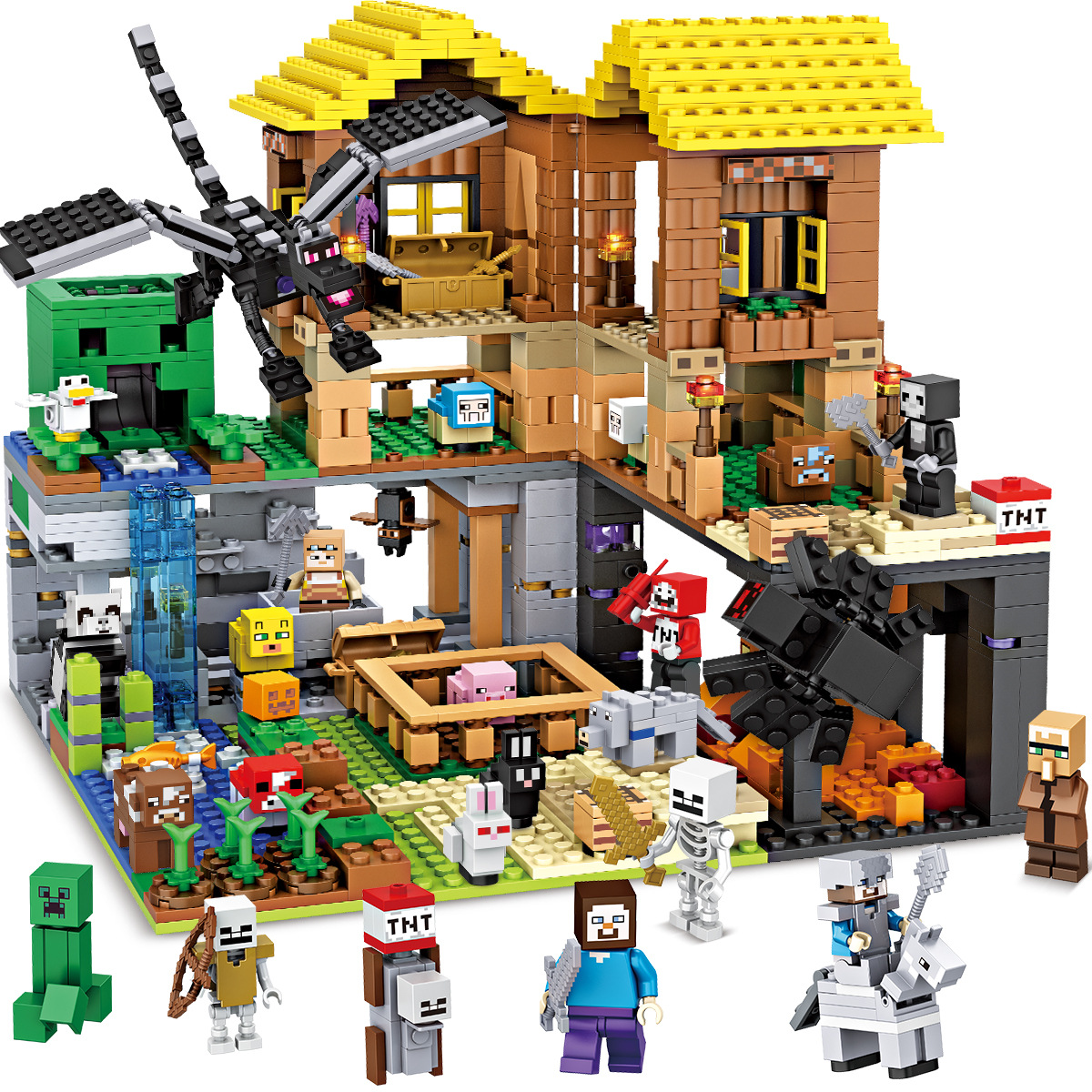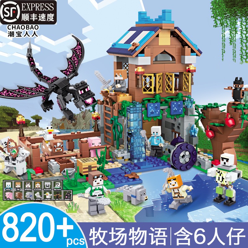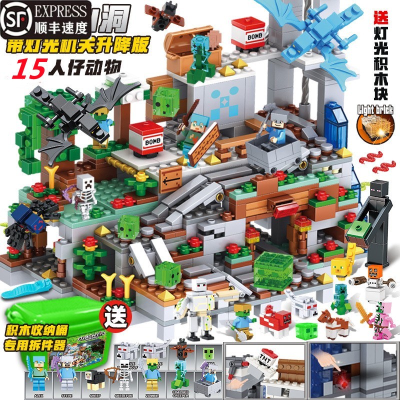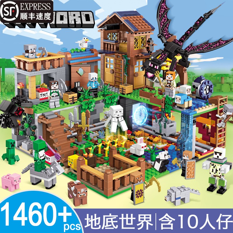 兼容乐高拼装积木机关山洞小屋村庄房子末影龙男孩子我的世界玩具