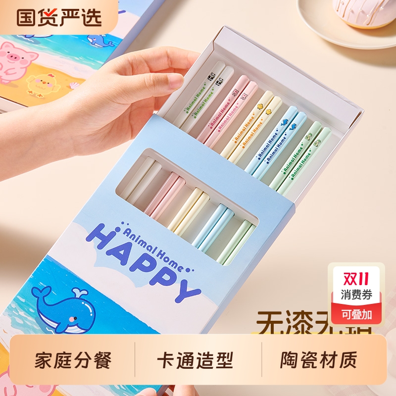陶瓷筷子家用高档抗菌防霉筷子可爱新款个人家庭专人专用一人一筷