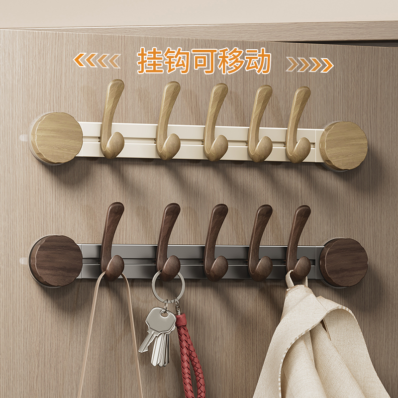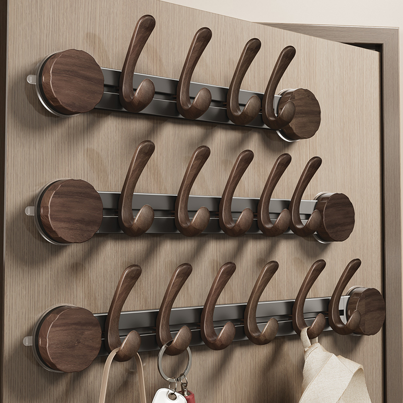 吸盘门后挂钩免打孔强力承重门后挂衣架收纳壁挂置物架排钩胡桃木