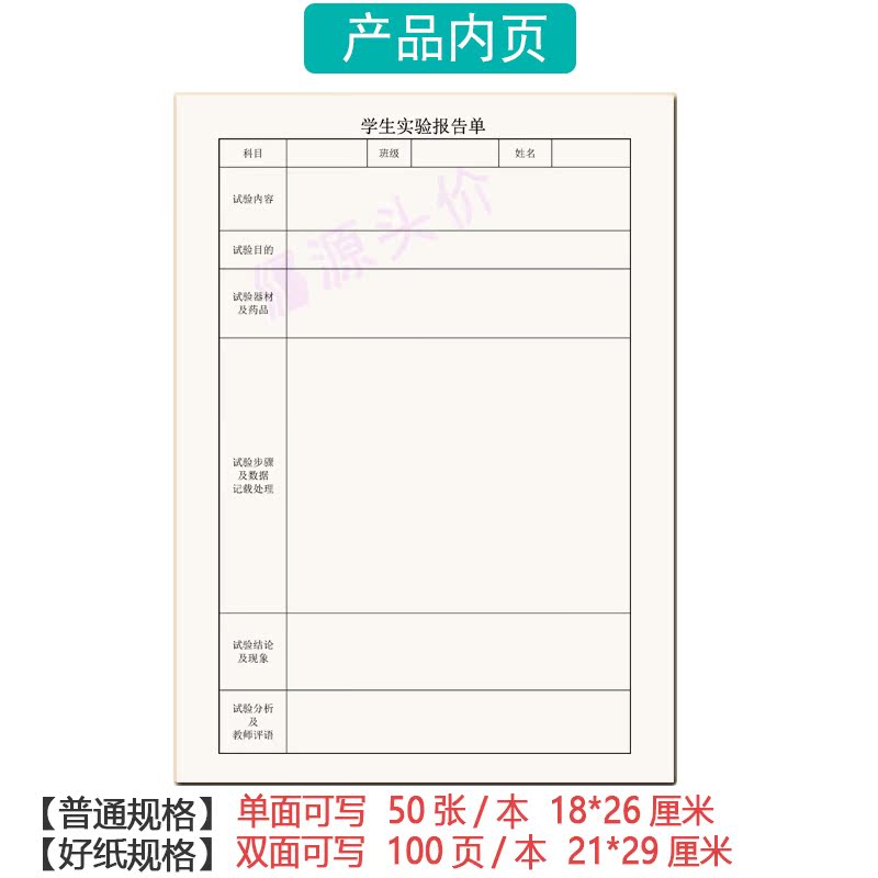 学生实验报告单试验过程结果结论现象分析评价笔记书写本装订定制